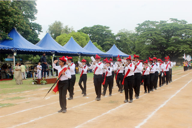 A select group of students from VI TO XI constitute to our school band. They have been well trained under the guidance of our band co-ordinator Mr Prem. The school band display their talents on important events like the sports day, Independence Day and Republic Day.
